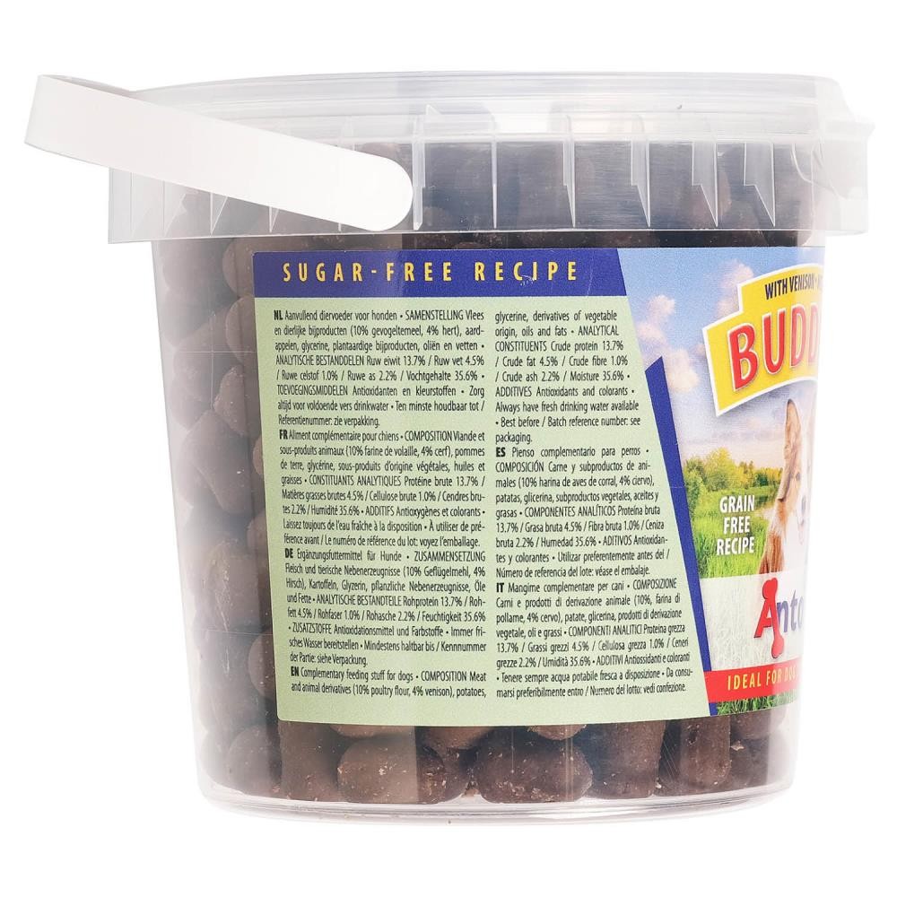 Meat and animal derivatives (10% poultry flour, 4% deer), potatoes, rice, oils and fats, derivatives of vegetable origin.