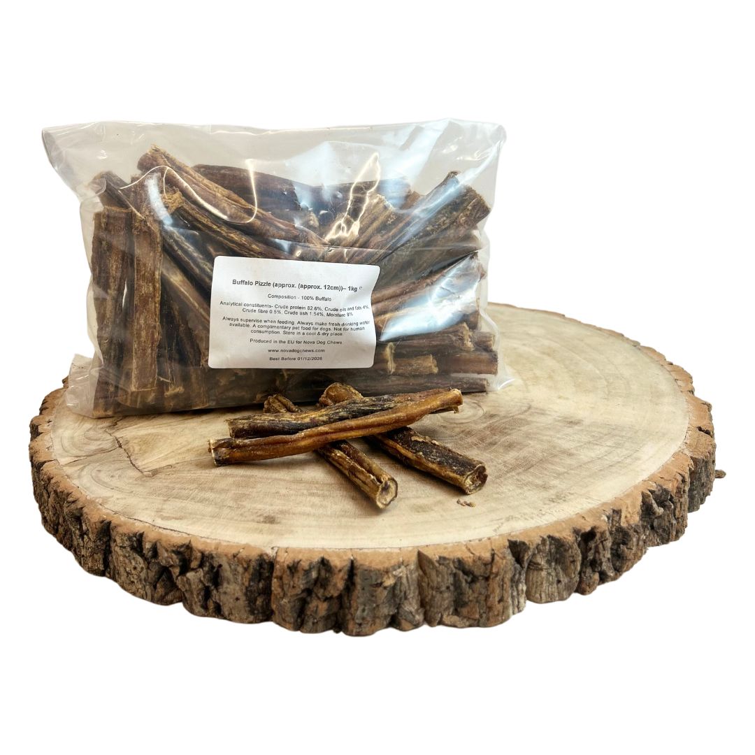 Buffalo Pizzles are a long-lasting hard chew that helps to satisfy your dog’s natural urge to chew as well as promoting a healthy mouth by removing plaque and tartar from their teeth while they are gnawing down.