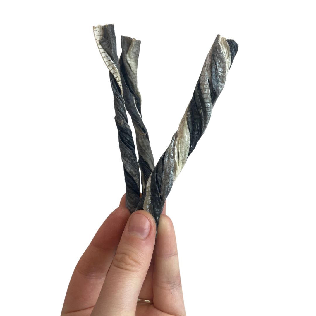 Fish Skin is low in fat and packed with essential Omega-3 and Omega-6 fatty acids, these chewy and highly digestible treats support healthy immune system, hear, cognitive function and promotes healthy skin and coat.