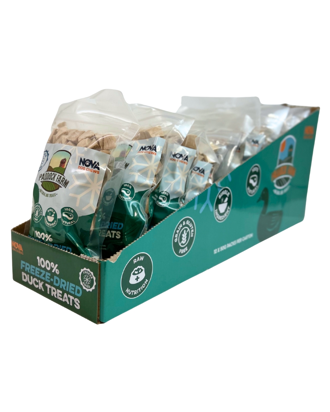 Our 100% duck freeze-dried treats offer high protein, rich nutrients (vitamins, minerals), excellent digestibility, and strong palatability. They are great for sensitive stomachs and fussy eaters. Our freeze-dried treats lock in nutrients through gentle processing, are 100% single source protein, supporting overall health, digestion, and immunity.
