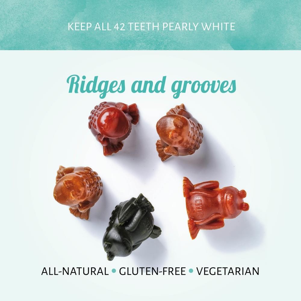 Made with vegetarian friendly ingredients, these dog chews make and ideal hypoallergenic treat. These frog shaped chews are designed to clean the teeth when chewed. Made with simple, easy and digest natural ingredients. They are also Wheat and Gluten free.