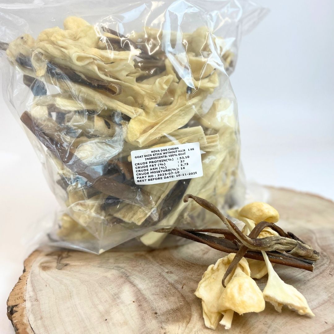 Goat skin is a delicious natural chew that is great for all breeds and sizes. Goat skin is great at removing tartar and plaque from your dog’s teeth, it is also known to be a perfect treat for dogs who may have intolerances, sensitivities or allergies.