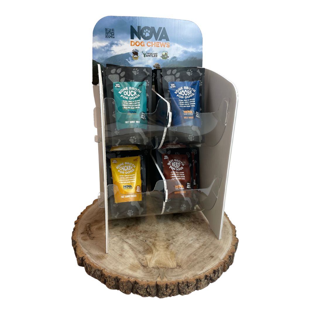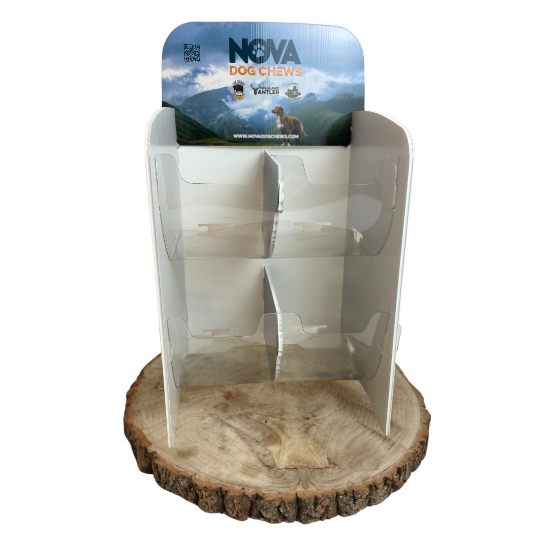 Counter top display stand with four compartments for general Nova stock.
