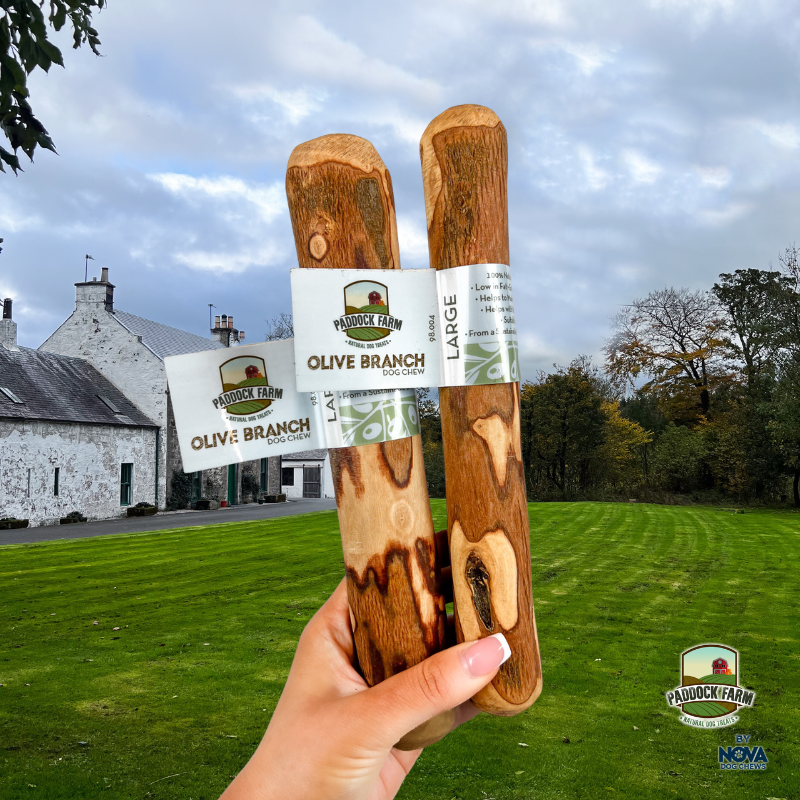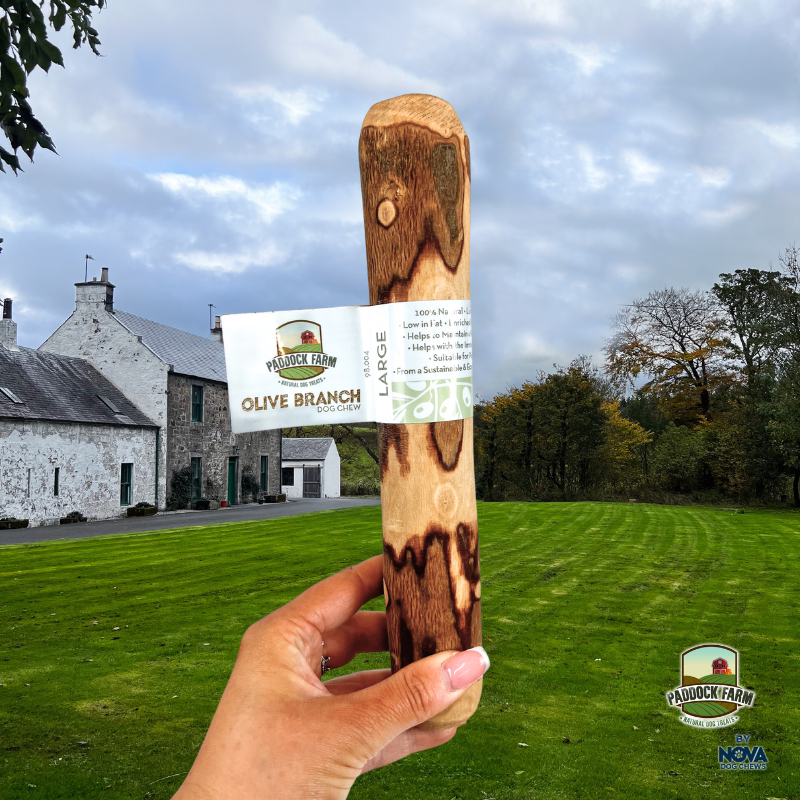 Olive branch chews are great for satisfying your dogs chewing instinct. While your dog is gnawing on the branch, it will scrape the plaque and tartar build up promoting strong and healthy teeth. Olive branch chews can be enjoyed by all breeds and sizes. Choose the largest stick appropriate for your breed of dog.