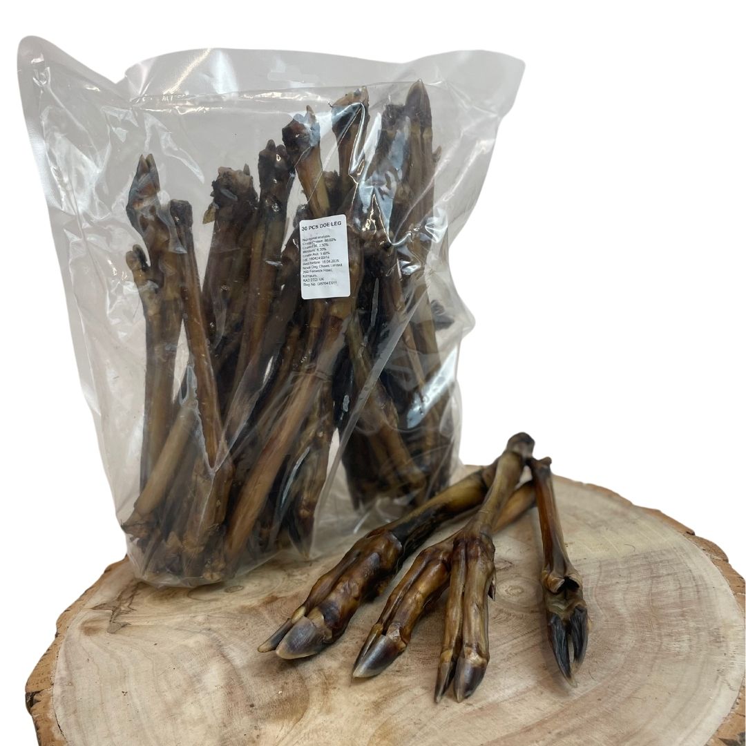 Roe deer legs are high in protein which aids in muscle and tissue repair. They are high in collagen for healthy coats and skin, high in glucosamine and chondroitin that aids in promoting joint health.