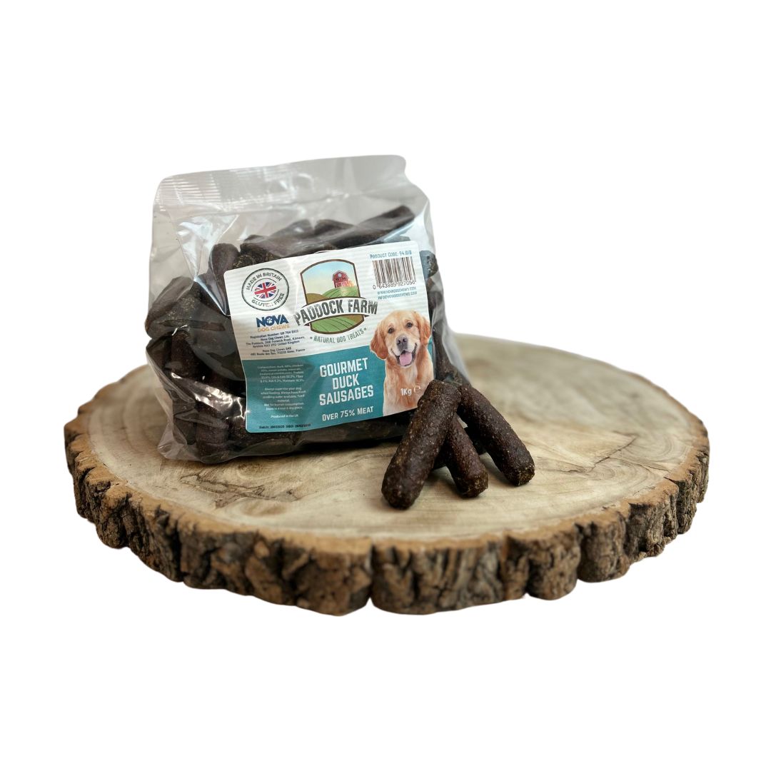 Our Duck Sausages are packed with high-quality protein and full of natural flavour, making them an irresistible treat for dogs of all breeds and sizes. Made with 40% duck and 35% chicken, they’re a nutritious, grain-free option perfect for daily rewarding or as a tasty snack between meals.